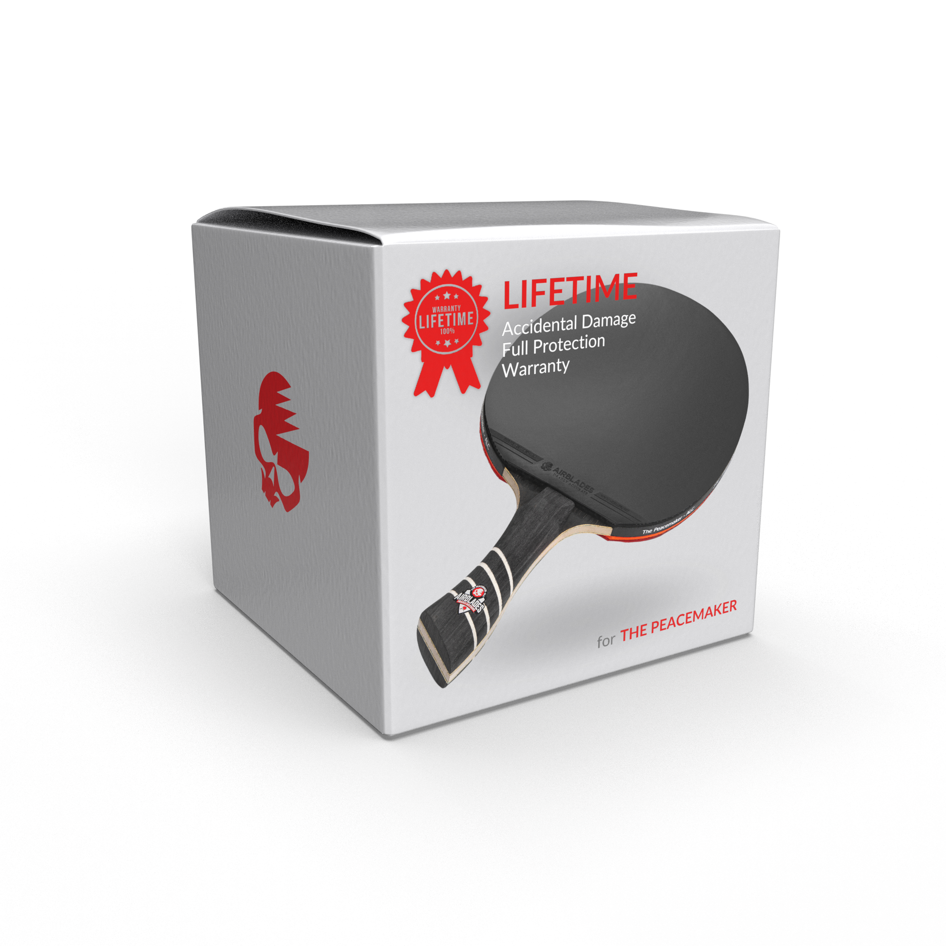 The AirBlades Lifetime Accidental Damage Full Replacement Warranty covers damages to the paddle handle due to accidents that occur during the normal use of the product for its intended function of play, throughout the period of ownership. This warranty does not cover wear and tear the paddle rubbers from everyday use. For exclusions, please refer to the 'Limitations and Exclusions' section below.